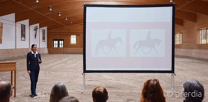 Ihr Vortrag schafft einerseits einen Überblick über die Pferdeausbildung nach klassischen Vorbildern: Was wird wann gelehrt und warum? Und dann werden diese Ausbildungsetappen abgeglichen mit dem, was oftmals auf Turnieren zu sehen ist. Eine Tierärztin erläutert außerdem, was diese Unterschiede in der Bewegung jeweils im Pferdekörper auslösen und welche gesundheitlichen Folgen zu erwarten sind.