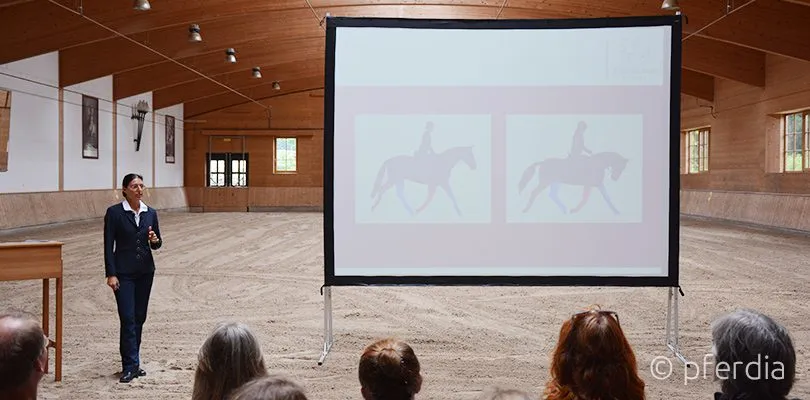 Anja Beran zieht im Kurs weitere Beispiele heran, die zeigen, dass international erfolgreich gehende Pferde zum Teil eklatante Bewegungsmuster zeigen. Diese sind jedoch nicht mit korrektem Reiten und Ausbilden vereinbar.