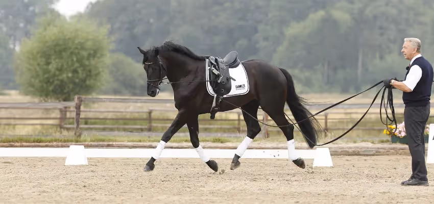Viele Ausbilder arbeiten ihre Pferde gerne an der Doppellonge. So können sie dem Pferd neue Lektionen ohne Reitergewicht beibringen.