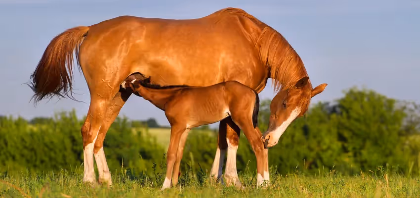 Nach der Geburt sollte das Fohlen innerhalb von 30 Minuten atmen und nach etwa 1 bis 2 Stunden aufstehen und trinken. Mutter und Fohlen werden gründlich untersucht, um ihre Gesundheit sicherzustellen.