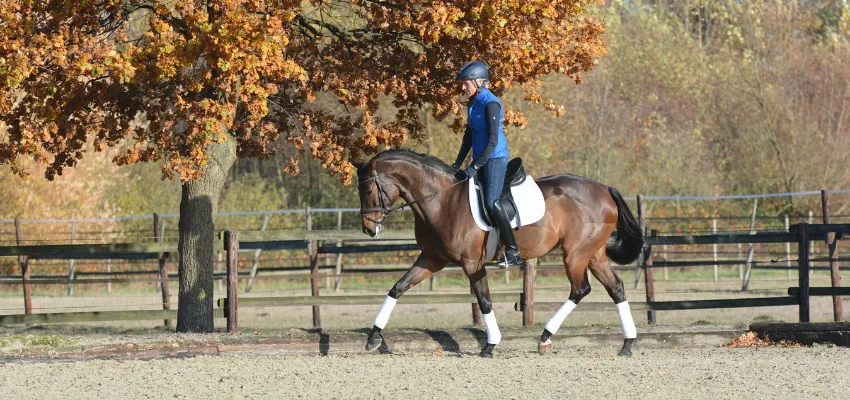 Besonders Trab-Galopp-Übergänge machen dein Pferd aufmerksam und aktiv. Erste versammelnde Übungen, wie zum Beispiel das Zirkel verkleinern im Galopp, trainiert durch die vermehrte Lastaufnahme, auch die Hankenbeugung deines Pferdes. Doch auch Seitengänge gehören in das Programm (sofern kein Sehnenschaden oder ähnliches vorliegt), denn sie machen dein Pferd in der Rippenpartie geschmeidig, verbessern die Längsbiegung und helfen bei der Geraderichtung!