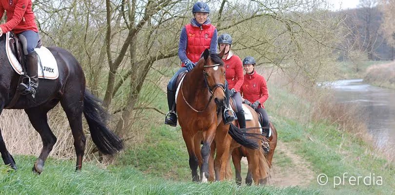 Das Stolpern oder Rücken wegdrücken kann aber auch an Reiterfehlern liegen, erklärt sie: „Es kann auch sein, dass Stolpern oder Rücken wegdrücken durch Sitzfehler des Reiters passieren. Wichtig ist, das Pferd auch bergab zu begleiten. Bitte nicht das Treiben komplett aufgeben! Sanftes, angemessenes Treiben mit dem Schenkel hilft dem Pferd, die Bauchmuskulatur zu aktivieren!“
