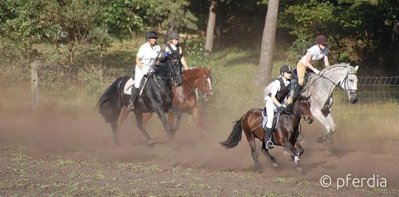 Gefahr ginge häufig auch von Gruppendynamiken aus: Man wisse ja nicht, wie gut alle Mitreiter ihre Pferde im Griff haben. „Deshalb empfehle ich beim Jagdreiten stets, auf Abstand zu achten! Je besser die Reiter sind, die im Pulk reiten, desto schöner wird das Erlebnis“, so ist sie sich sicher. Je unerfahrener die Mitreiter selbst sind, desto mehr müsse man selbst aufpassen. Für flotte Gelände – und Herbstritte empfiehlt sie den Spring- oder Vielseitigkeitssattel. Lange Bügel und tiefe Sitzflächen, wie im Dressursattel üblich, sind für solche Ausflüge nicht zu empfehlen.