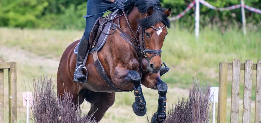 Ein weiterer Baustein in der vielseitigen Jungpferdeausbildung ist die Springgymnastik. Sie trägt zur Entwicklung der Geschmeidigkeit und Geschicklichkeit des jungen Reitpferdes bei. Wenn das Pferd bereits durch Freispringen an Hindernisse gewöhnt ist, wird es leichter über Cavaletti und Stangen gehen. Das Heranführen an Sprünge geschieht langsam und stufenweise, zunächst mit Hilfe von Cavaletti, über die du im Schritt und Trab reitest. Danach kannst du aus dem Galopp einzelne, höhere Cavaletti überspringen. Später kommen einzelne kleine Sprünge hinzu, wobei zusätzlich aufgestellte Fänge als Orientierung dienen und das Ausbrechen vor dem Sprung verhindern.