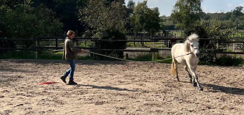 In der ersten Zeit solltest du noch keine Ausbindezügel verwenden, damit das Pferd seine Balance besser finden kann. Wenn du nach einiger Zeit Ausbinder verwenden möchtest, dann solltest du sie gleich lang schnallen, da das Pferd sein Gleichgewicht auf dem Zirkel noch finden muss.