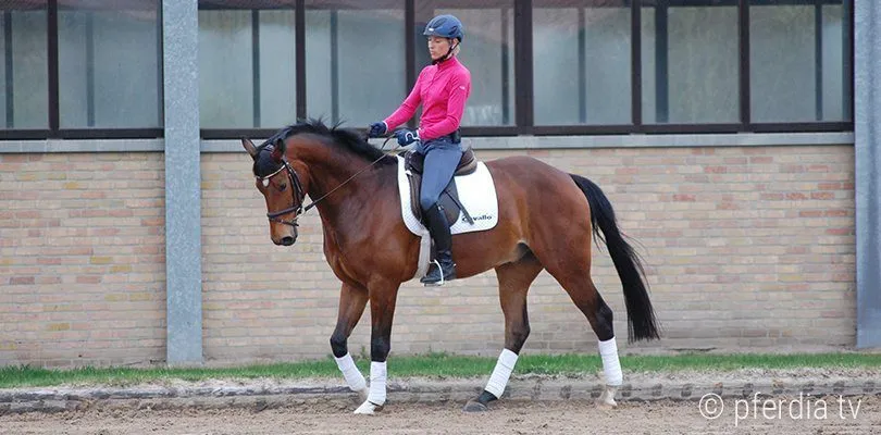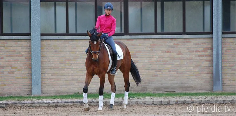 - Das Pferd ist dabei in Bewegungsrichtung gestellt und leicht gebogen.