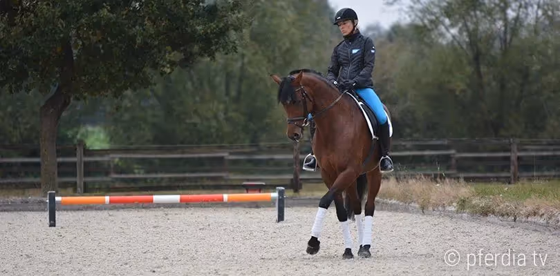 - Das Pferd versteht den äußeren, verwahrenden Schenkel als Hilfe zum Angaloppieren (Lösungsansätze: Halbe Paraden nutzen, vorab schauen, ob die Vorbereitung stimmig war)
