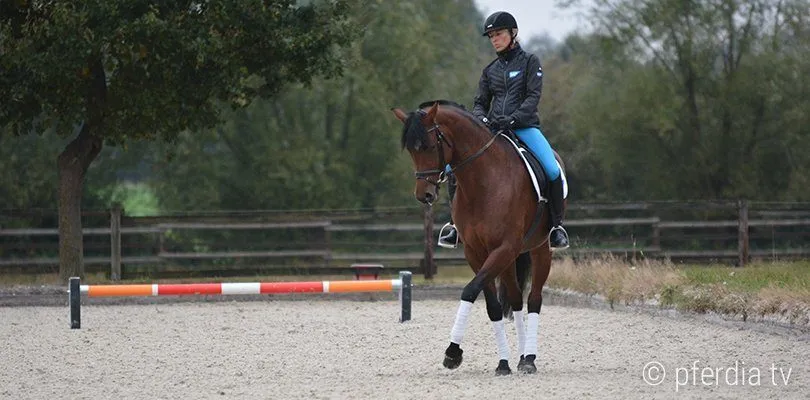 Das äußere Vorderbein muss um das inner greifen, die Hinterbeine sollen mitschreiten.