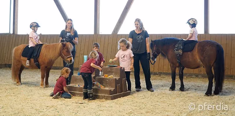 Es geht also immer darum, eine Grundlage zu bieten, mit der die Kinder später wirklich Reiten lernen können. Ihnen aber schon in der Vorbereitung sehr viel Wissen rund ums Pony mitzugeben.