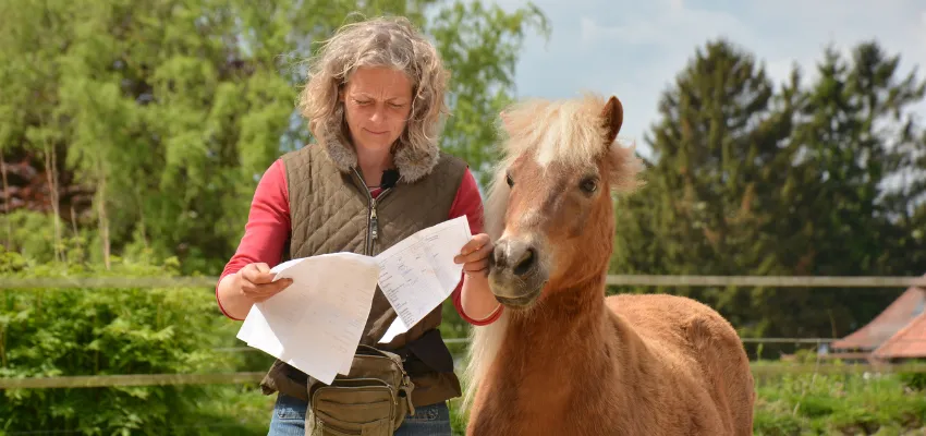 Du solltest deine Körpersprache extrem kontrollieren können. Dein Pferd soll sein Feedback ausschließlich durch den Click bekommen, daher „dürfen vor dem Click noch nicht mal die Füße zucken“, erklärt Nina Steigerwald, „weil jede Art der Bewegung Feedback gibt“. Grundsätzlich solltest du die Übung eine viertel- bis halbe Stunde lang mit deinem Pferd trainieren.