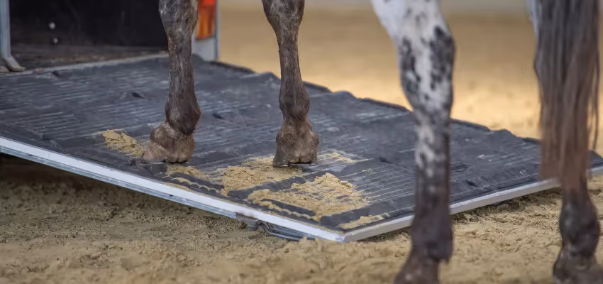 Der Pferdeanhänger sollte jeweils stabil stehen und die Klappe sollte flach auf dem Boden aufliegen. Außerdem müssen die Hebel der Klappe immer unter der Klappe verstaut sein und dürfen nicht seitlich herausragen, ansonsten kann sich dein Pferd an ihnen verletzen.