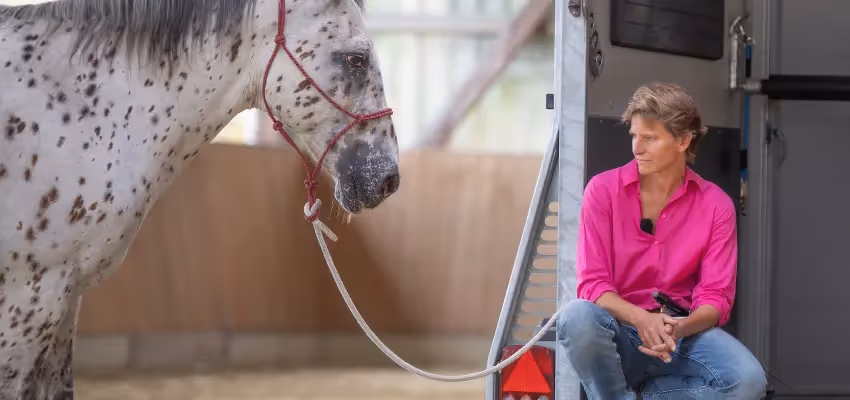 Wie du ein traumatisiertes Pferd verladen kannst, erklärt dir unsere Trainerin Michaela Kölbl auch in unserem Kurs. Das A und O ist hier, stets Ruhe zu bewahren.
