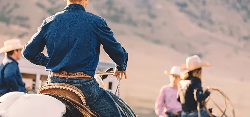 Zur typischen Westernreiter Bekleidung gehören in erster Linie der Cowboyhut, die Chaps und die Cowboystiefel. Der Cowboyhut dient dabei dem Schutz vor jeglichem Wetter wie Sonne, Wind und Regen. Wichtig ist jedoch, dass er gut passt, ansonsten fliegt er schneller vom Kopf als du gucken kannst. Die Chaps sind meist aus Leder und sorgen für einen sicheren Halt im Sattel. Außerdem schützen sie dein Bein vor Verletzungen durch Äste und Gestrüpp. Die Cowboystiefel verhindern durch den Absatz das Hindurchrutschen des Fußes durch den Steigbügel, ähnlich wie es gewöhnliche Reitstiefel tun. Auch hier sind gute Passform und hoher Komfort von Bedeutung, schließlich verbringen Westernreiter eine Menge Zeit in diesen Schuhen. Mit einer Bluse oder einem Hemd mit Gürtel kannst du deiner Westernreiter Bekleidung dann noch den letzten Schliff verpassen.