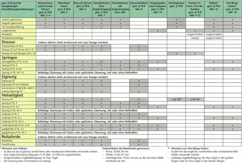 Welche Gebisse und Reithalfter sind nach der aktuellen LPO in welchen Prüfungen erlaubt?