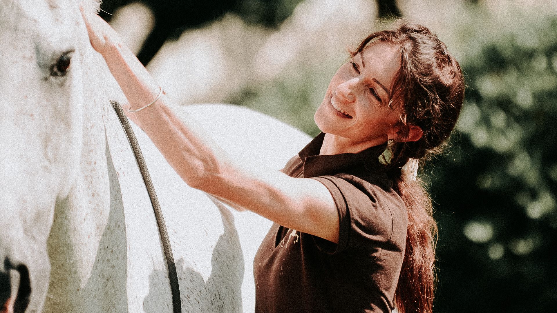 Doch so einfach das alles bei ihr aussieht, sie weiß auch, dass es bis zu dem Punkt, an dem sie jetzt steht, ein großes Stück Arbeit war. Beispielsweise mit ihrem Hengst Sultan, dem Sohn von Mistral: „Sultan war mein schwierigstes Pferd bisher“, erzählt sie. So sehr Mistral dem Menschen zugewandt ist, so sehr geht der Schimmel gern seinen eigenen Weg. Mit der Freiarbeit fand sie eine Lösung, dieses Pferd auf ihre Seite zu bekommen. So begann ihre Faszination für diese Art von Arbeit.