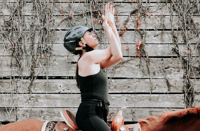 Cathy Woods hat ihre Leidenschaften kombiniert und ein Programm erschaffen, das sie „Body, Mind, Equine" nennt. Dabei geht es darum, mit Hilfe der Prinzipien und Positionen des Yoga den Umgang mit dem Pferd zu verbessern – am Boden und im Sattel.