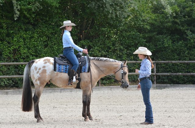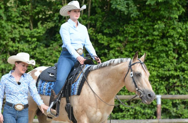 Trainerin Linda Leckebusch-Stark ist im Westernsattel zu Hause. Mit großer Leidenschaft nimmt sie an Turnieren teil und bildet Pferde sowie Reitschüler aus. Regelmäßig bildet sie sich in der USA - dem Heimatland der Cowboys - fort und trainiert unter anderem mit Benny Guitron, Gary Marble sowie Jim und Deana Searls.
