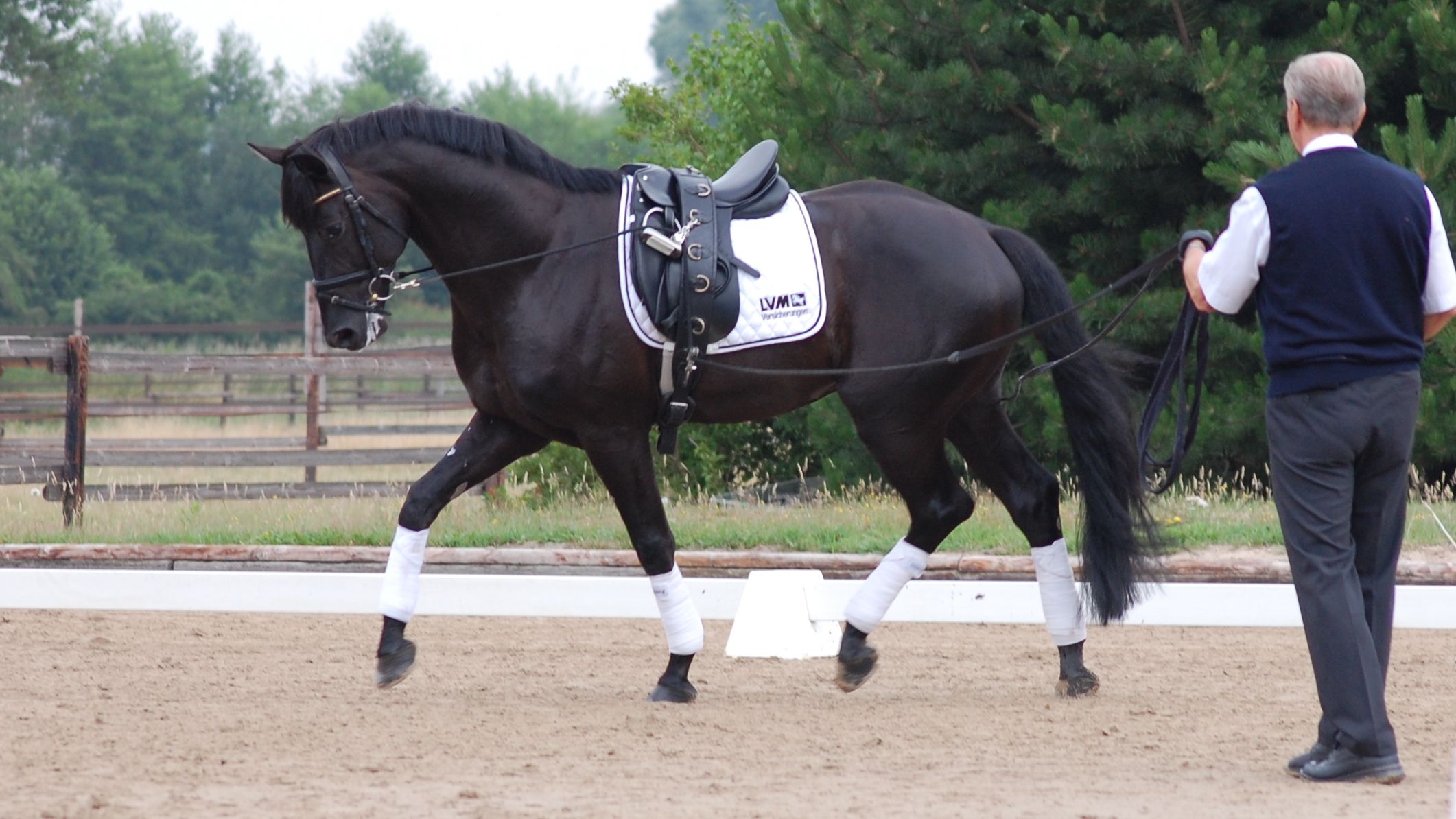 Der Ausbilder weiß, die erste Bekanntschaft mit der Doppellonge kann sehr verwirrend sein. Das richtige Ordnen der Leinen, die eigene Koordination und dann ist da auch noch die Longierpeitsche. Wilfried Gehrmann kann das allerdings nicht aus der Ruhe bringen und er erklärt geduldig jedem Neuling, was das Geheimnis hinter dem richtigen Ordnen der Ausrüstung ist. Als einzige Voraussetzungen dafür sieht er gute theoretische Kenntnisse in der Ausbildung der klassischen Reitlehre, um ein Pferd auch gewissenhaft und korrekt arbeiten zu können. Abgesehen davon und von einer unerlässlichen Unterstützung durch einen erfahrenen Ausbilder für die praktischen Fähigkeiten, könne jeder die Kunst der Doppellonge erlernen und sie auch vielseitig im Training einsetzen. Er selbst arbeitete mit dieser Methode sowohl in der Jungpferdearbeit als auch bei älteren Pferden und Korrekturpferden.