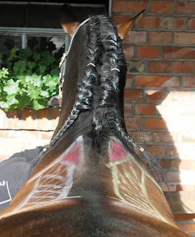 Have pieces of white and coloured chalk handy. The horse should be tethered and groomed. First, mark a vertical line at the place on the withers where the horse’s shoulder appears to be broadest.