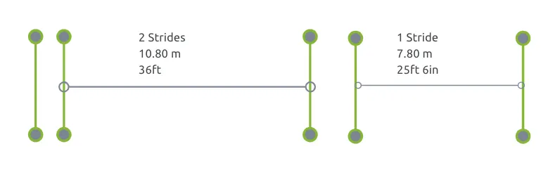 - 2 canter strides: 10.40 -10.80 m / 34ft 1in - 35ft 4in