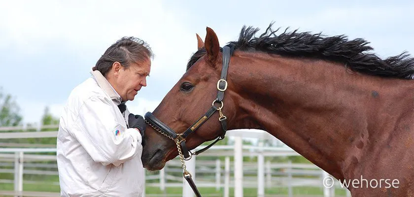 Using acupressure points between the neck and the transition to the shoulder can help calm the horses when they are being tied. "I let the horse have the feeling that we have all the time in the world", he explains.