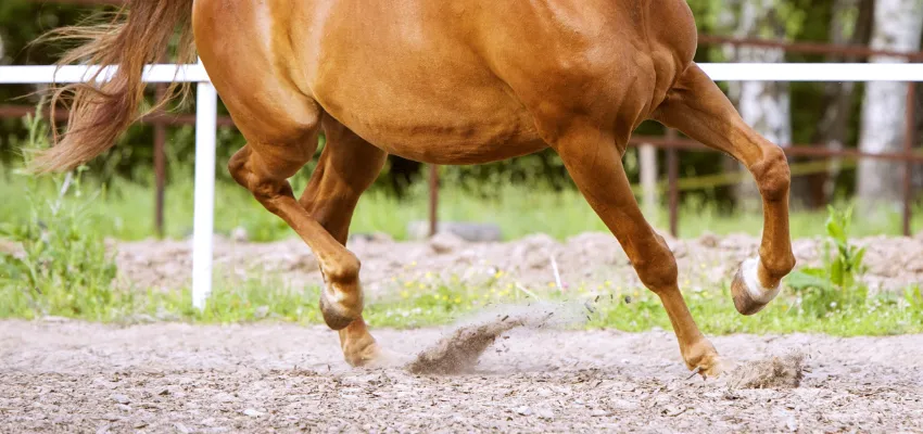 Laminitis is an inflammation of the laminae in the hoof wall area. A diet that is too rich in sugars and starch can lead to laminitis. Furthermore, obesity, metabolic diseases, overexertion, or poisoning can also cause laminitis. Moreover, symptoms of laminitis can include favoring the affected hooves, mild to severe lameness, tender and tentative walking, especially on hard ground, pulsation at the pastern, and warm hooves.